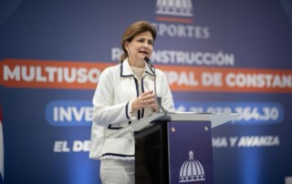 La obra tuvo una inversión cercana a los RD$22 millones y fortalece el deporte y la vida comunitaria del municipio. Constanza, La Vega.– La vicepresidenta de la República, Raquel Peña, junto al ministro de Deportes, Kelvin Cruz, entregó este domingo el remodelado Multiuso Municipal