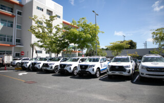 Con la implementación de la estrategia de seguridad ciudadana Mi País Seguro, se entregaron 34 camionetas y 65 motocicletas a nuevos policías que fortalecerán la seguridad en Santo Domingo Este. Santo Domingo Este. - Tras encabezar la puesta en marcha de la Estrategia de