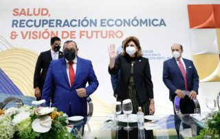 Vicepresidenta participó en el almuerzo anual de la Asociación de Industriales de la Región Norte. Santiago, RD- La vicepresidenta de la República, Raquel Peña, adelantó que el Gobierno mantiene conversaciones con diversas empresas farmacéuticas, productoras de vacunas anti COVID-19, con el propósito de